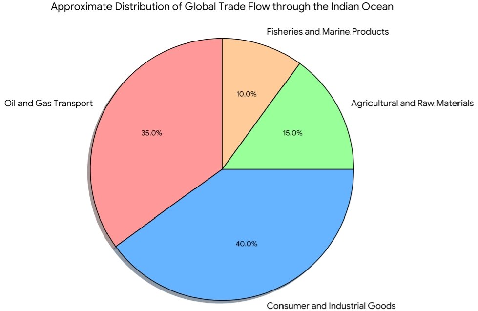 This graph highlights how the Indian Ocean accounts for a massive share of the world’s seaborne trade, particularly in energy and manufactured goods. Yet, this heavy dependence increases pressure on fragile ecosystems and exposes shipping lanes to various risks.