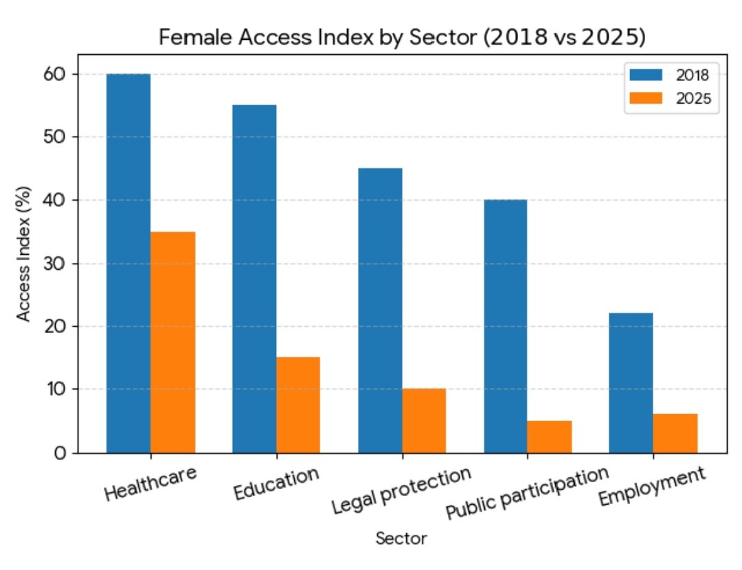 By 2025, Afghan women face a level of exclusion comparable to or worse than pre-2001, but within a society now more economically fragile and dependent on humanitarian aid.