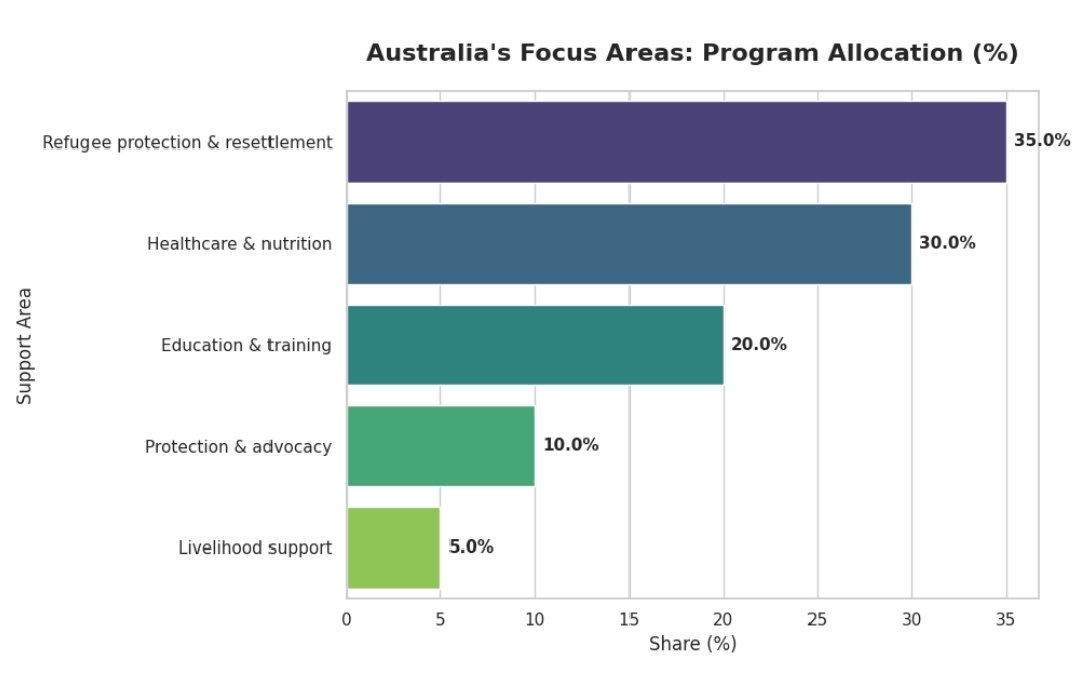 Australia: Focuses on refugee protection, resettlement, education, and capacity building for Afghan women outside Afghanistan.