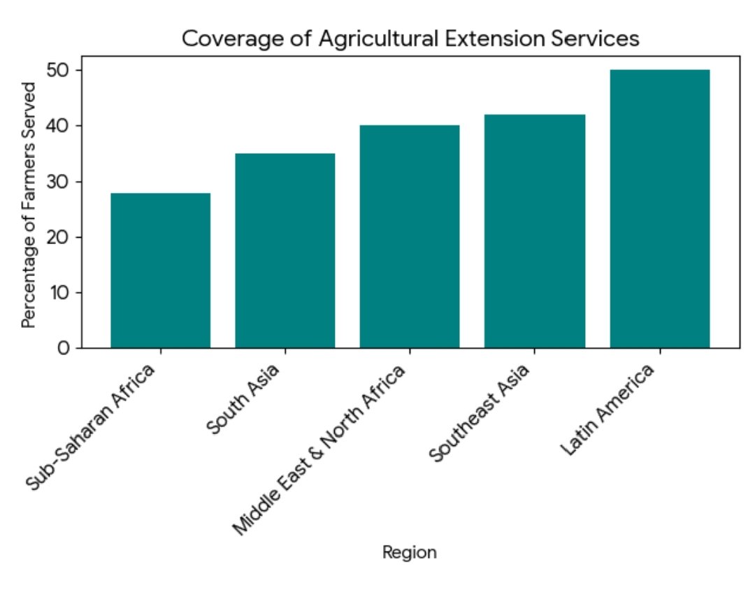 Agricultural extension services play a vital role in disseminating knowledge about improved practices, pest management, and climate adaptation. However, extension systems in many developing countries are weak, understaffed, and underfunded.