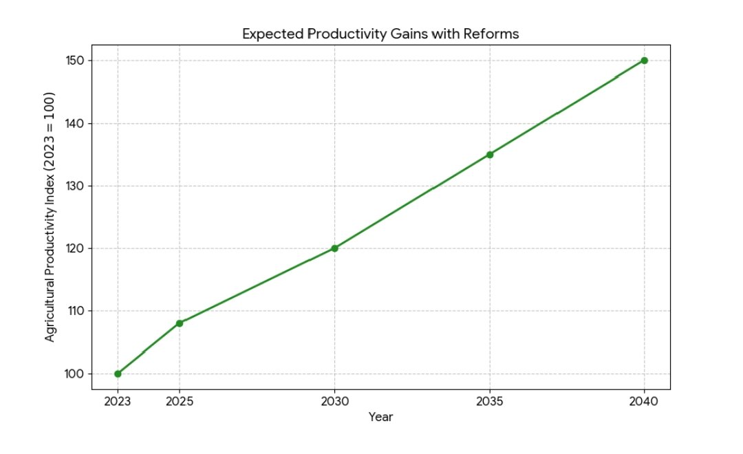 Strategic public investment: Focused spending on research, irrigation, infrastructure, and risk management can enhance productivity.
