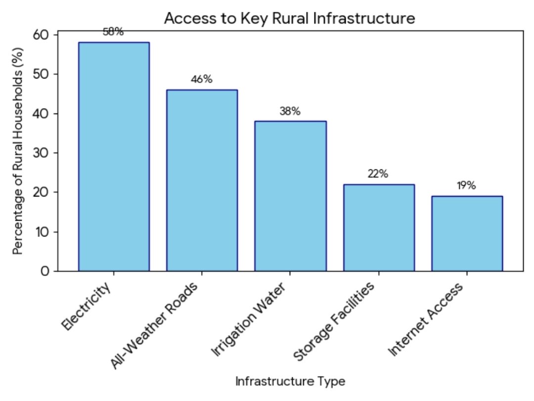 Infrastructure plays a critical role in linking farmers to markets, services, and information. Poor road networks, lack of electricity, and limited access to clean water significantly increase the cost of agricultural production and marketing.