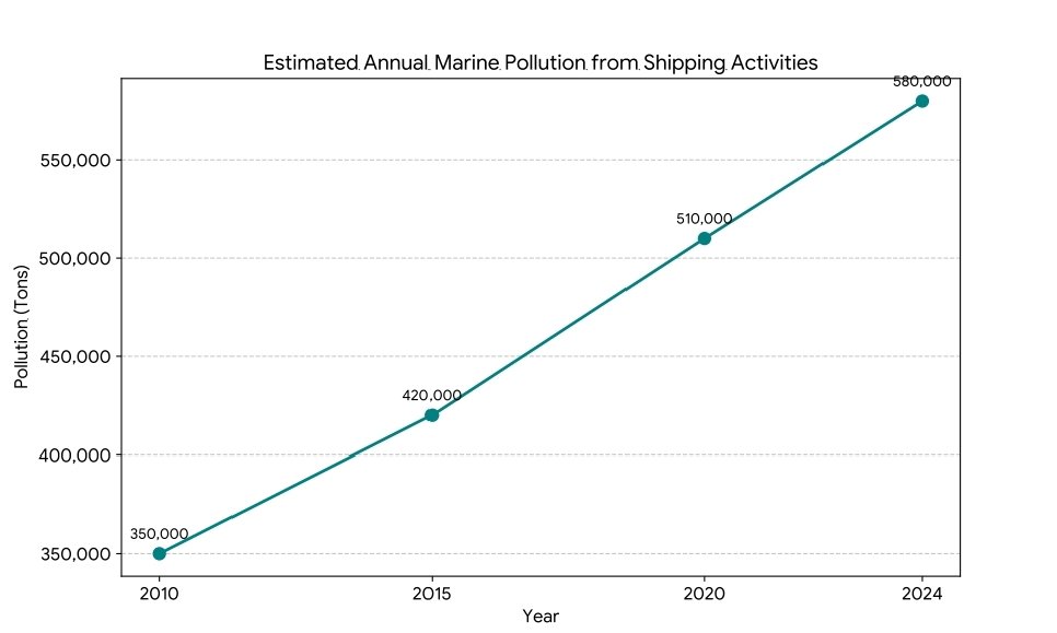 3. Waste and Sewage Dumping: Many vessels dump plastic, waste oil, and chemicals illegally into the sea.