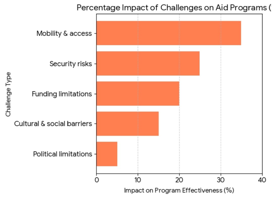Operational Challenges: Mobility restrictions, security, and cultural barriers limit aid effectiveness.