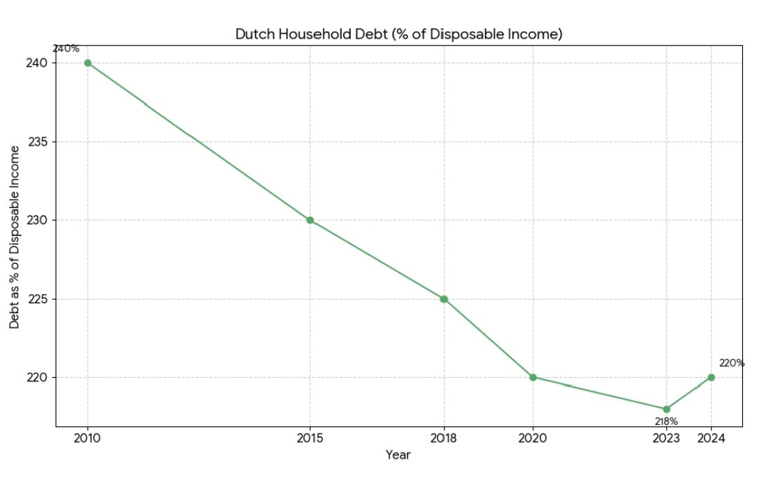 Dutch households hold some of the highest mortgage debt levels in Europe, with total mortgage debt exceeding 100% of GDP in recent years. Key consequences include: